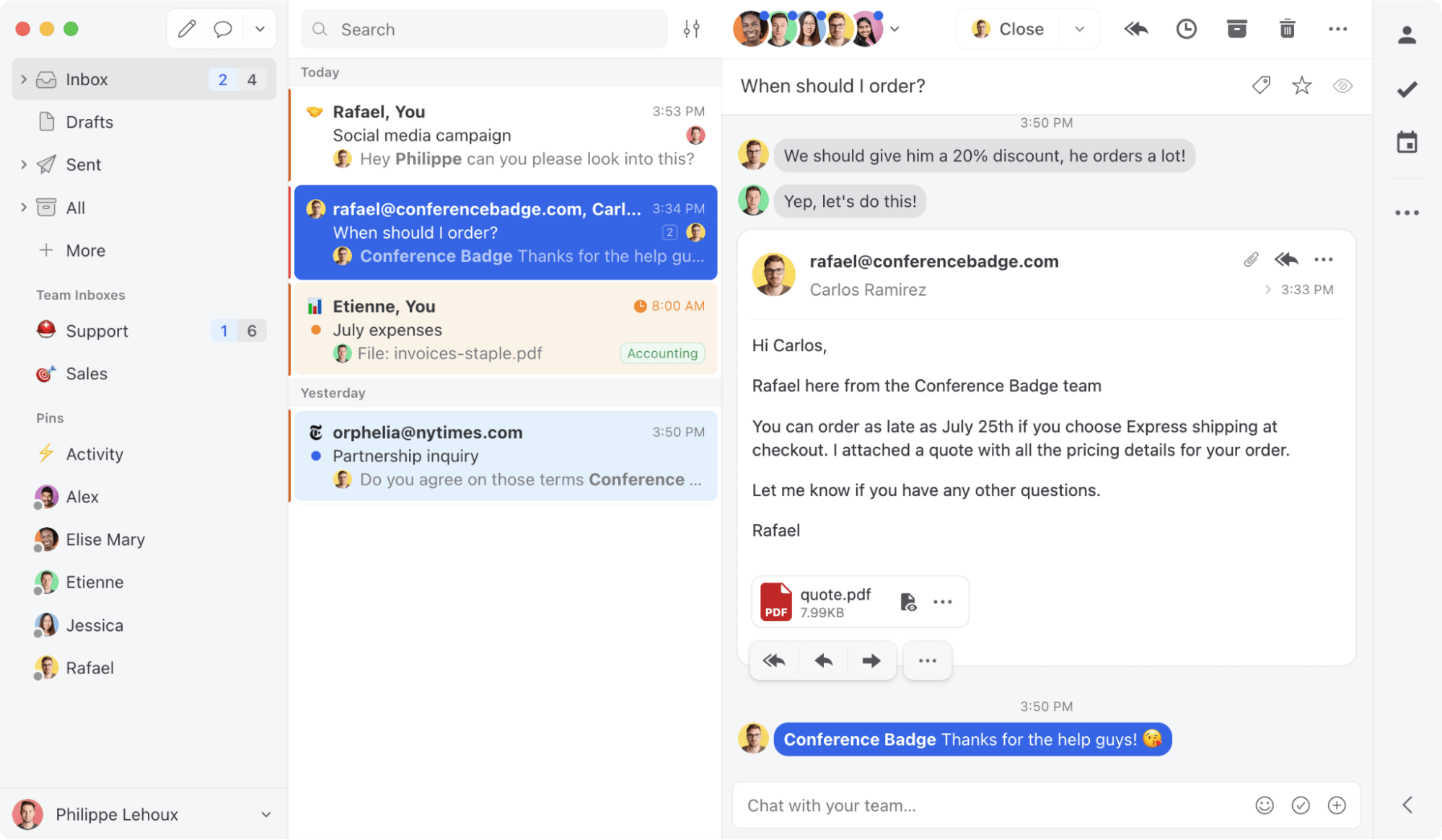 - Combines email, chat, and task management, eliminating the need for multiple tools.