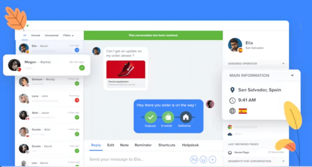 - Tidio enables communication through live chat, email, and Facebook Messenger, centralizing customer interactions in one platform.