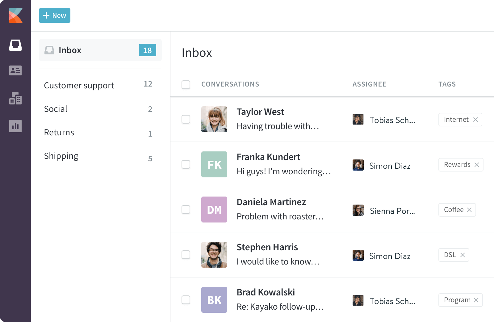 - Shared inbox for team collaboration on customer communications.