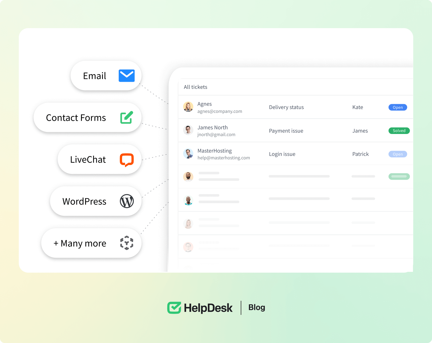 Use a ticketing system with a clear and easy-to-understand interface 👀 Set up HelpDesk in minutes and start sending messages in one place just like that.