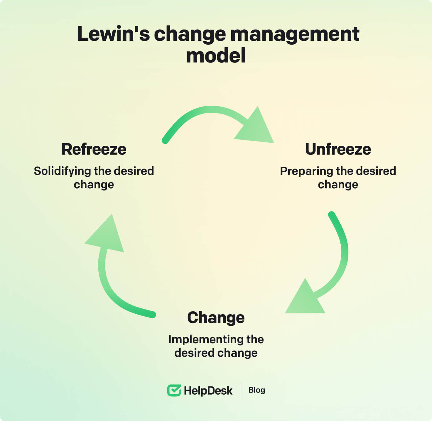 For example, during the unfreeze phase, you’ll decide what changes are necessary, discuss them with your team, and analyze them. You’ll then integrate the changes, explain their benefits, and even train employees to utilize them best.