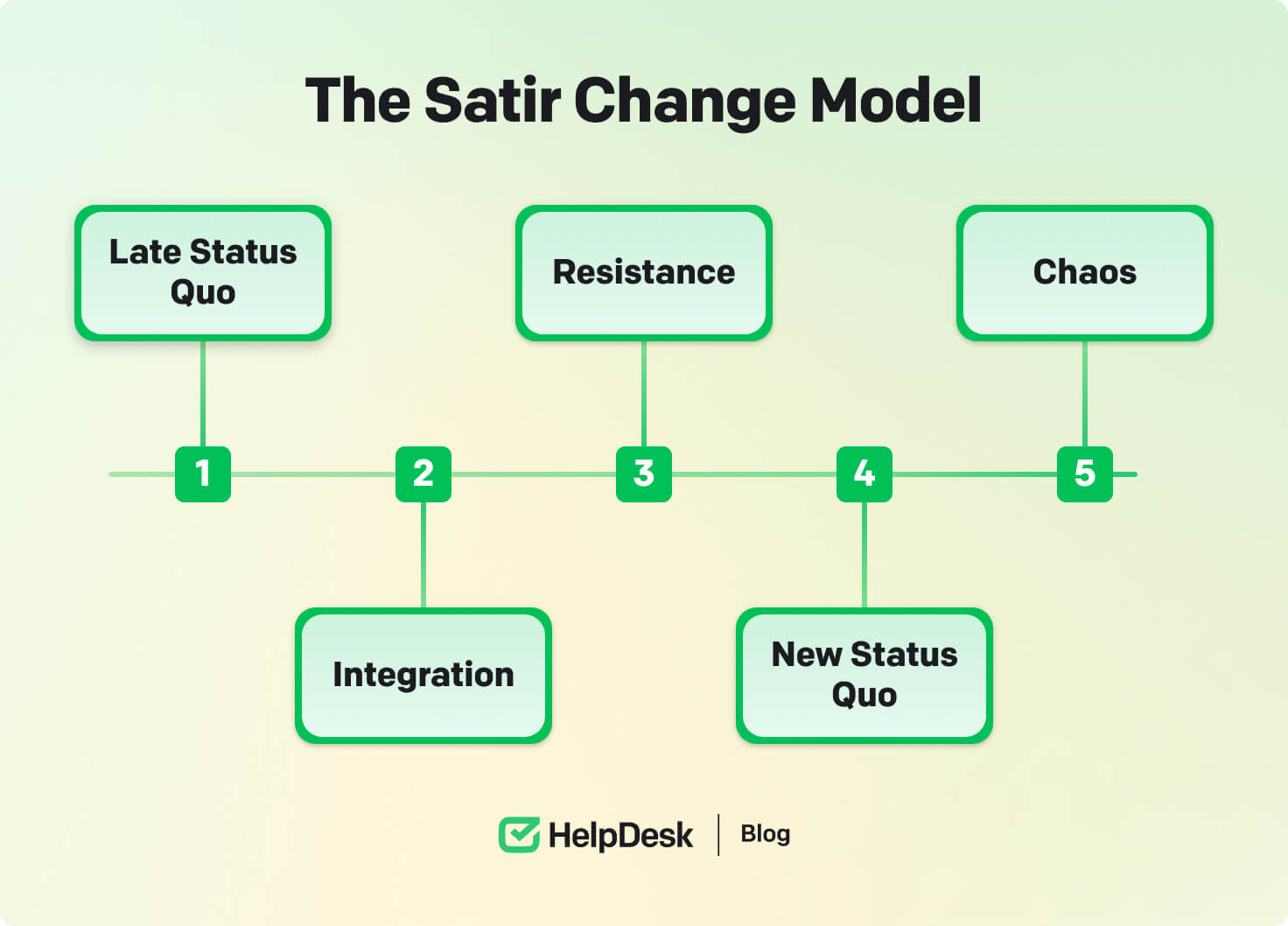 Developed by therapist Virginia Satir, this model, based on the five stages of grief, was initially intended to study how families go through change. Today, it is used as a transition change management model in organizations worldwide.
