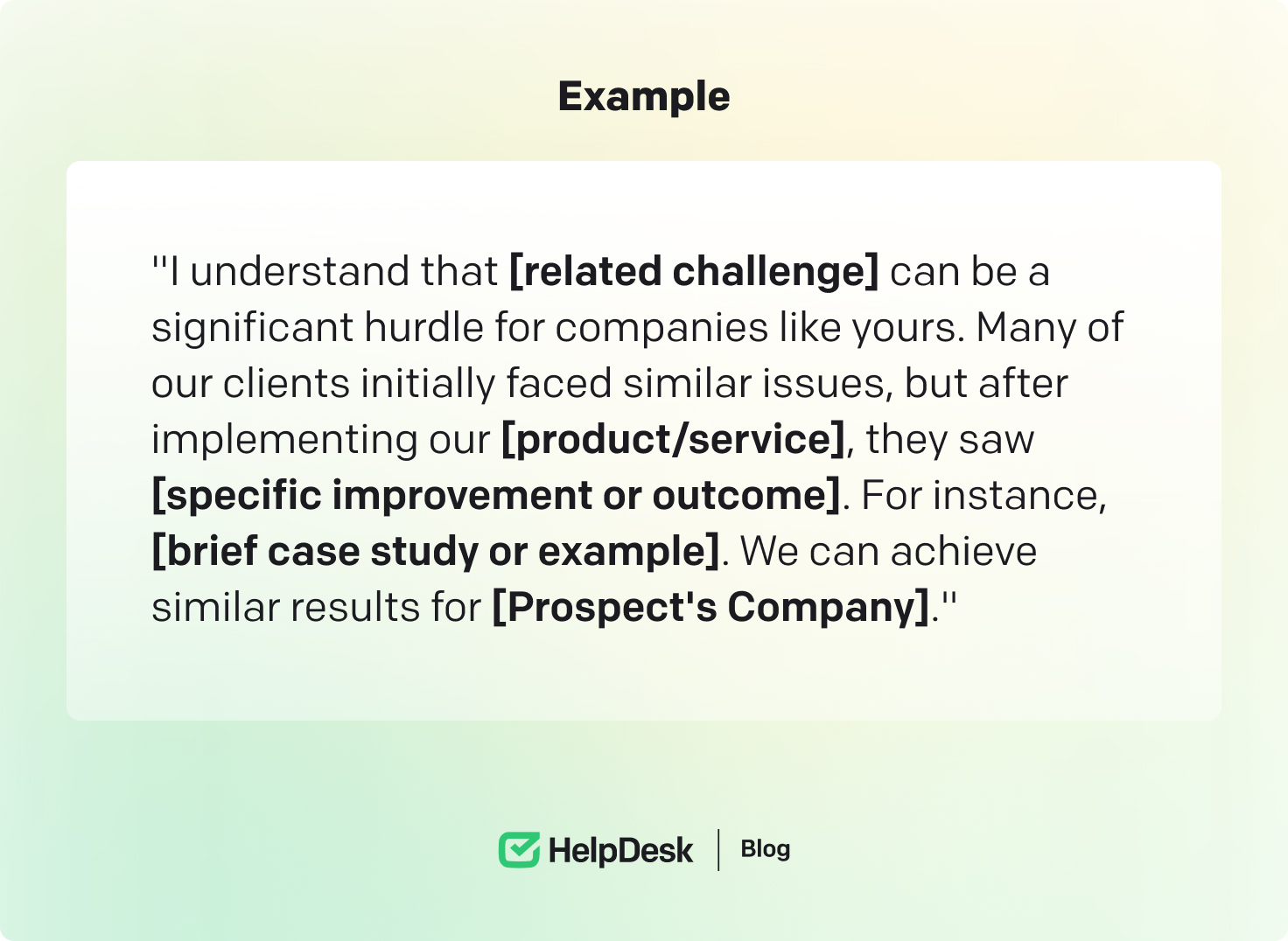 You can also ask a question or make a statement encouraging the prospect to respond. A question or a statement should relate to their current challenges or goals, showing that you understand their situation and initiating a dialogue.