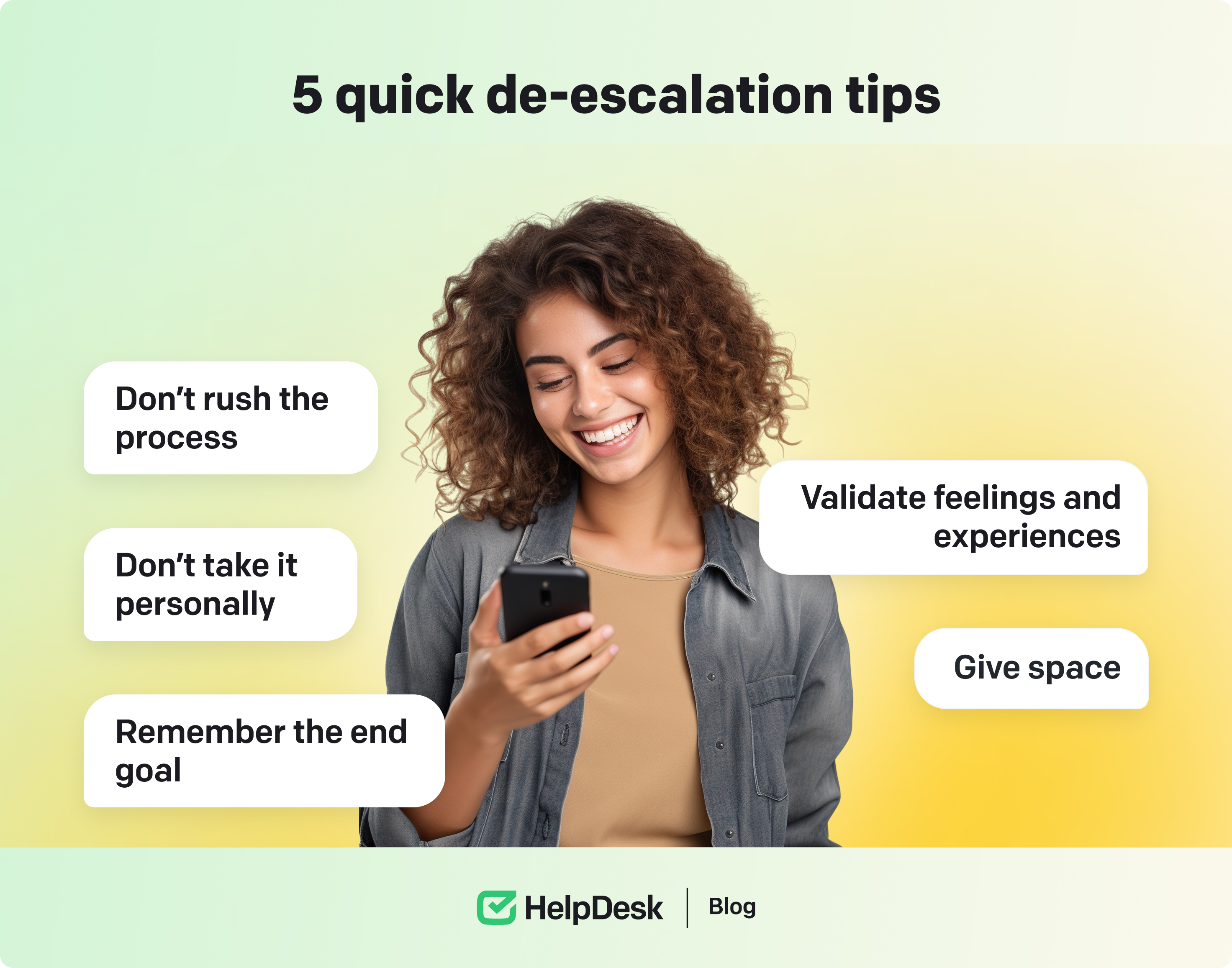 De-escalation techniques: It’s essential to de-escalate the situation through intense conversations. Acknowledge the other person’s feelings by saying, “I can see this is frustrating for you.” It shows empathy and helps to calm emotions. Also, giving the other person space to express themselves without interrupting can help diffuse anger and frustration.