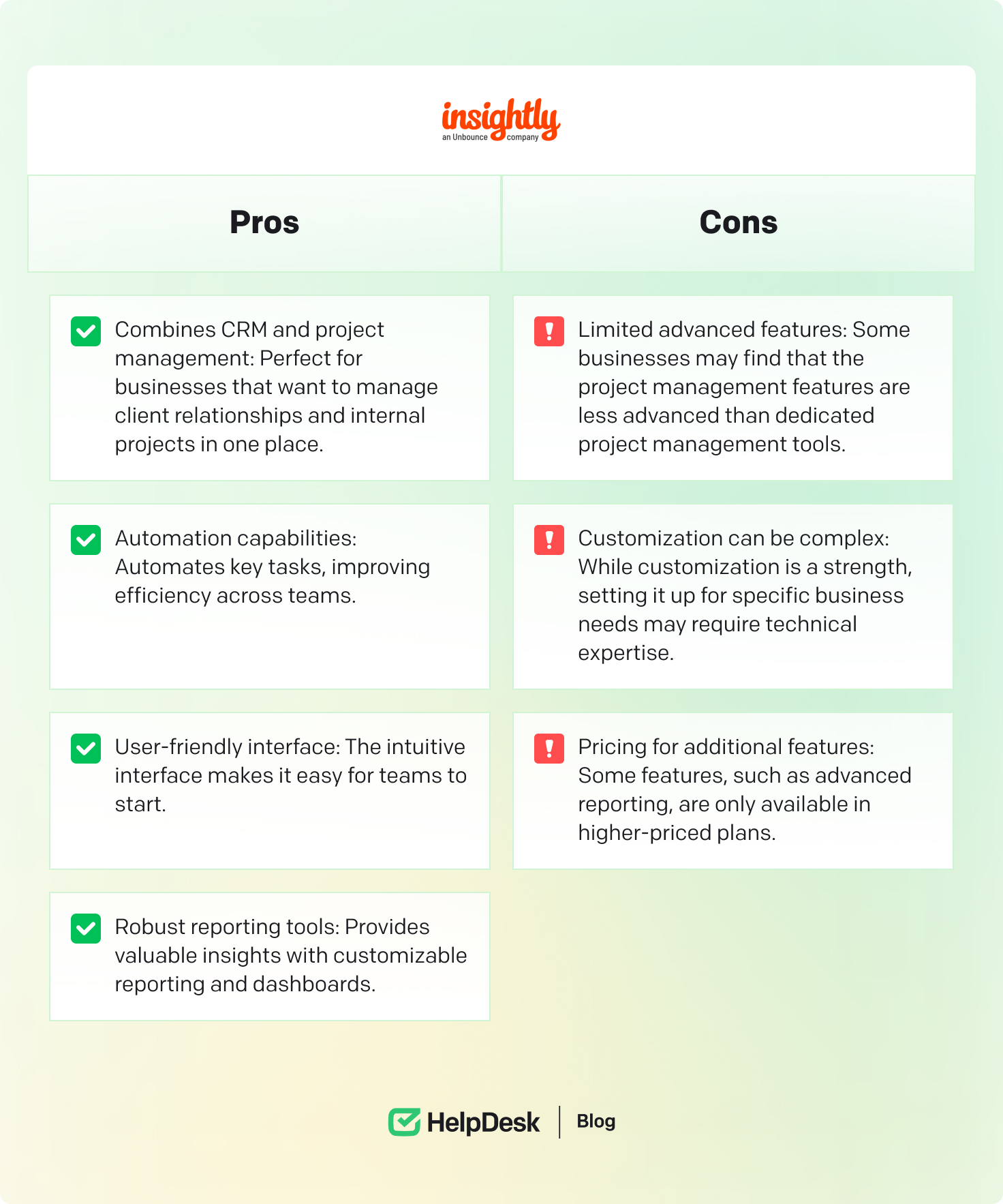 Insightly is a cloud-based CRM and project management tool designed to help businesses manage customer relationships and internal workflows. Companies should combine CRM and project management capabilities into one platform, allowing for smoother operations and better alignment between sales and project teams.