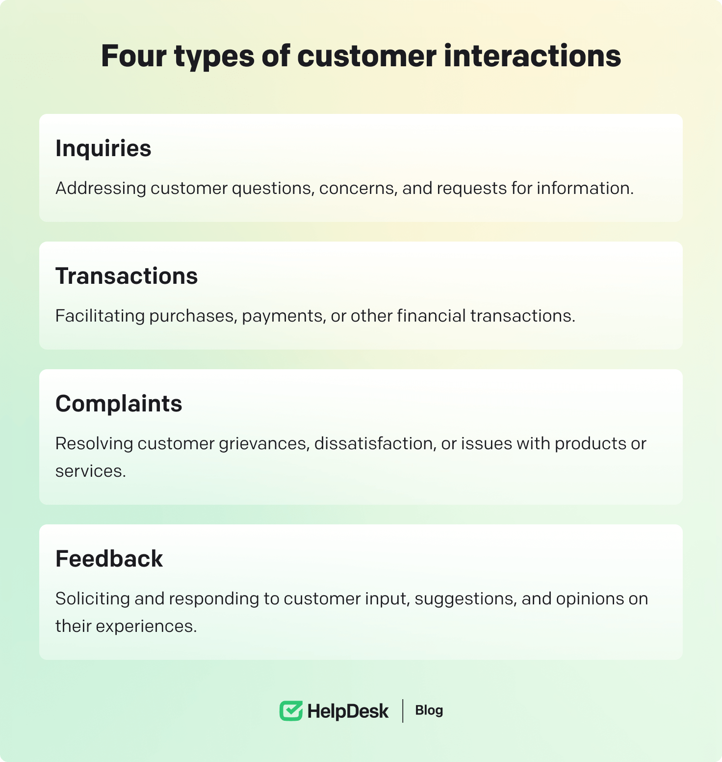 Several distinct types emerge within customer interactions, each serving a specific purpose in the customer journey.