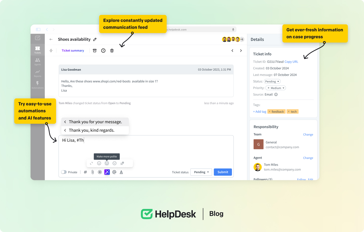 Leveraging these insights allows you to address pain points, enhance customer satisfaction, and build stronger, more loyal relationships with your existing customers. Tools like HelpDesk can streamline collecting and analyzing feedback, ensuring that no valuable insight is overlooked and that your support operations are efficient and responsive.