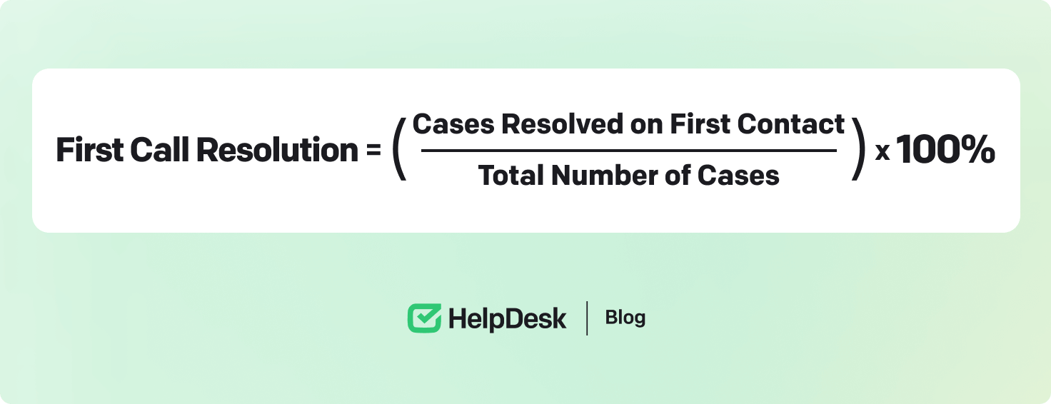 First call resolution = (Cases resolved on first contact / Total number of cases) x 100%