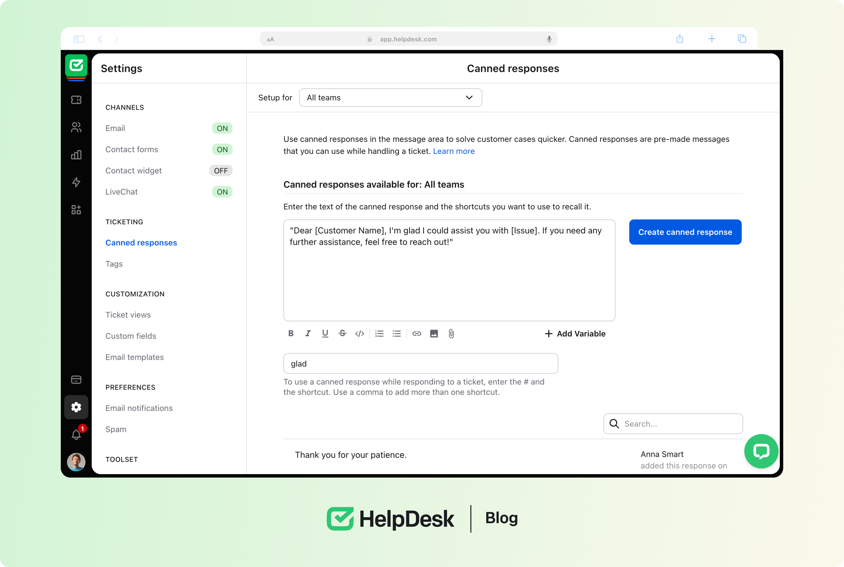 Most importantly, using varied responses changes the tone of your sentences. You sound more human and less robotic, which builds customers’ trust in your support services and improves the overall experience.