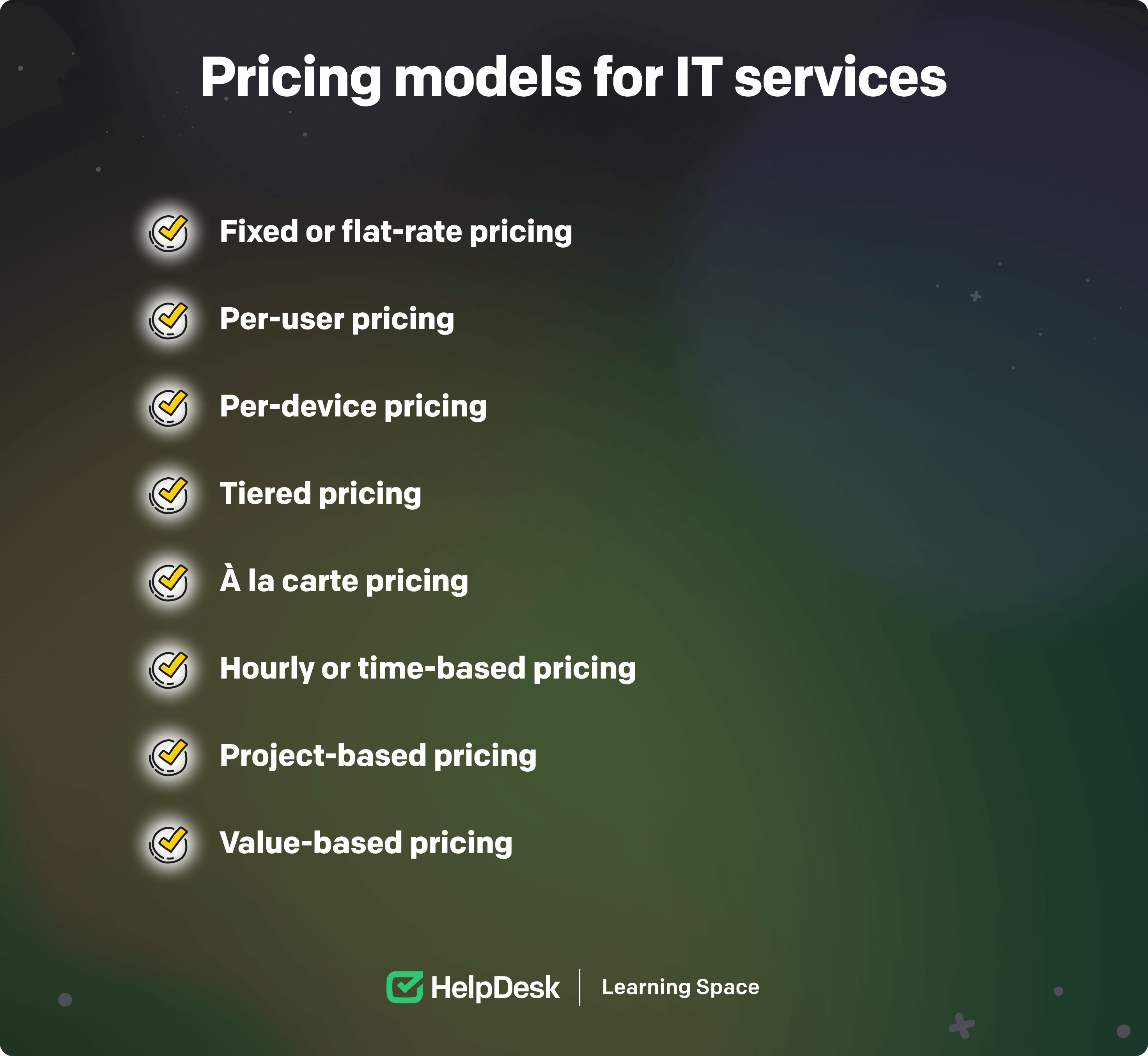 Pricing models for IT services, including IT ops, vary, allowing companies to choose the option that best fits their budget and requirements. Let’s take a look at popular pricing models that service providers set for IT ops and other services, along with their advantages and disadvantages.