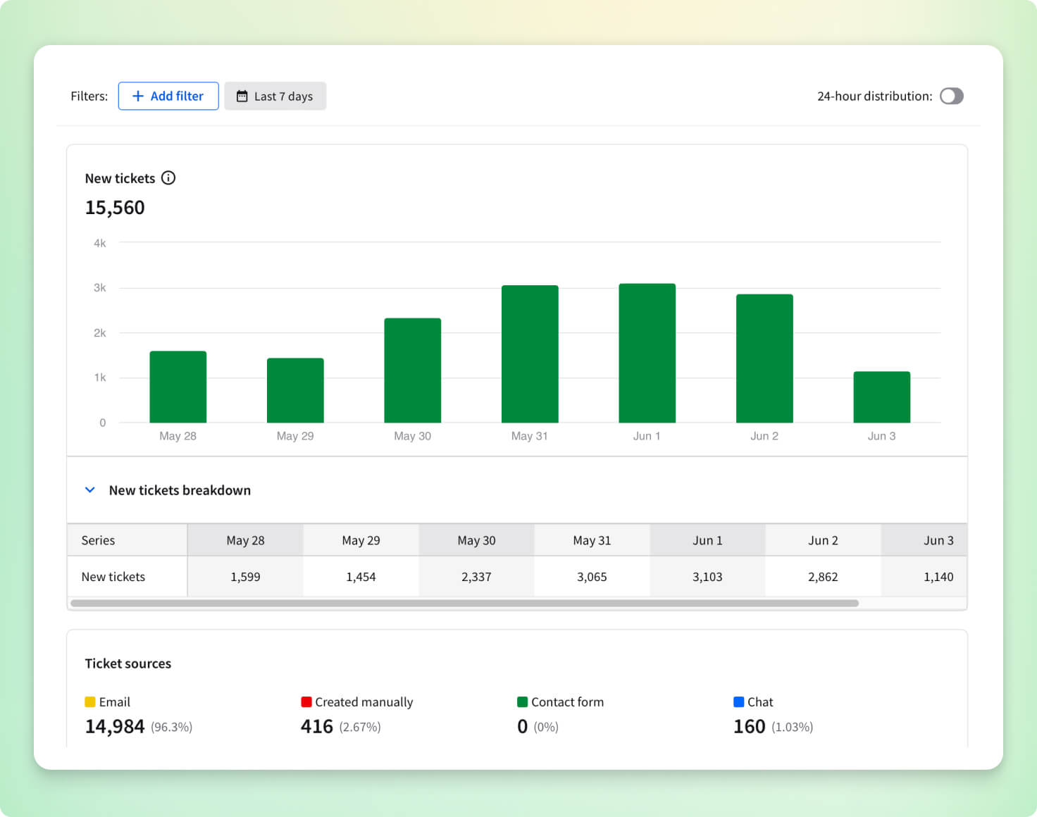 Tools like HelpDesk make analyzing and acting on this predictive data easier, helping you avoid potential difficulties. HelpDesk reports can show when there’s a spike in client volume or ticket numbers and identify the most popular messaging channels based on ticket sources so you can develop and support those channels better with every customer service representative.