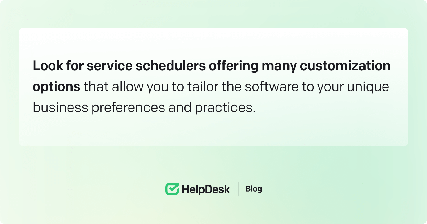 Integration with CRMs and customer support tools like HelpDesk can help the software monitor customers’ appointment preferences and offer more personalized scheduling services that boost customer loyalty and satisfaction.