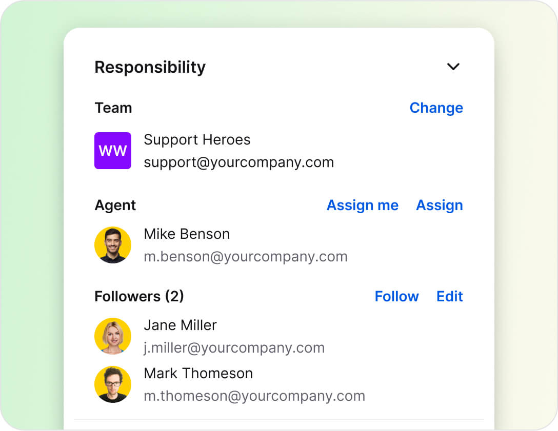 Read about ticket managementPersonalize every detail from email templates and canned responses to signature branding and custom fields. Adjust your desk service to fit your unique needs.